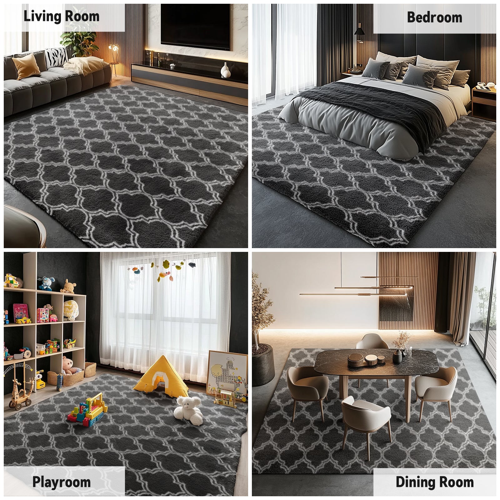 5ft x 8ft Geometric Shaggy Area Rugs for Bedroom, Moroccan Fluffy Living Room Carpet, Dark Gray