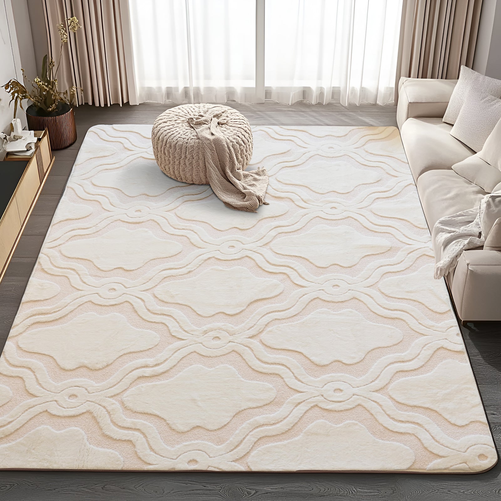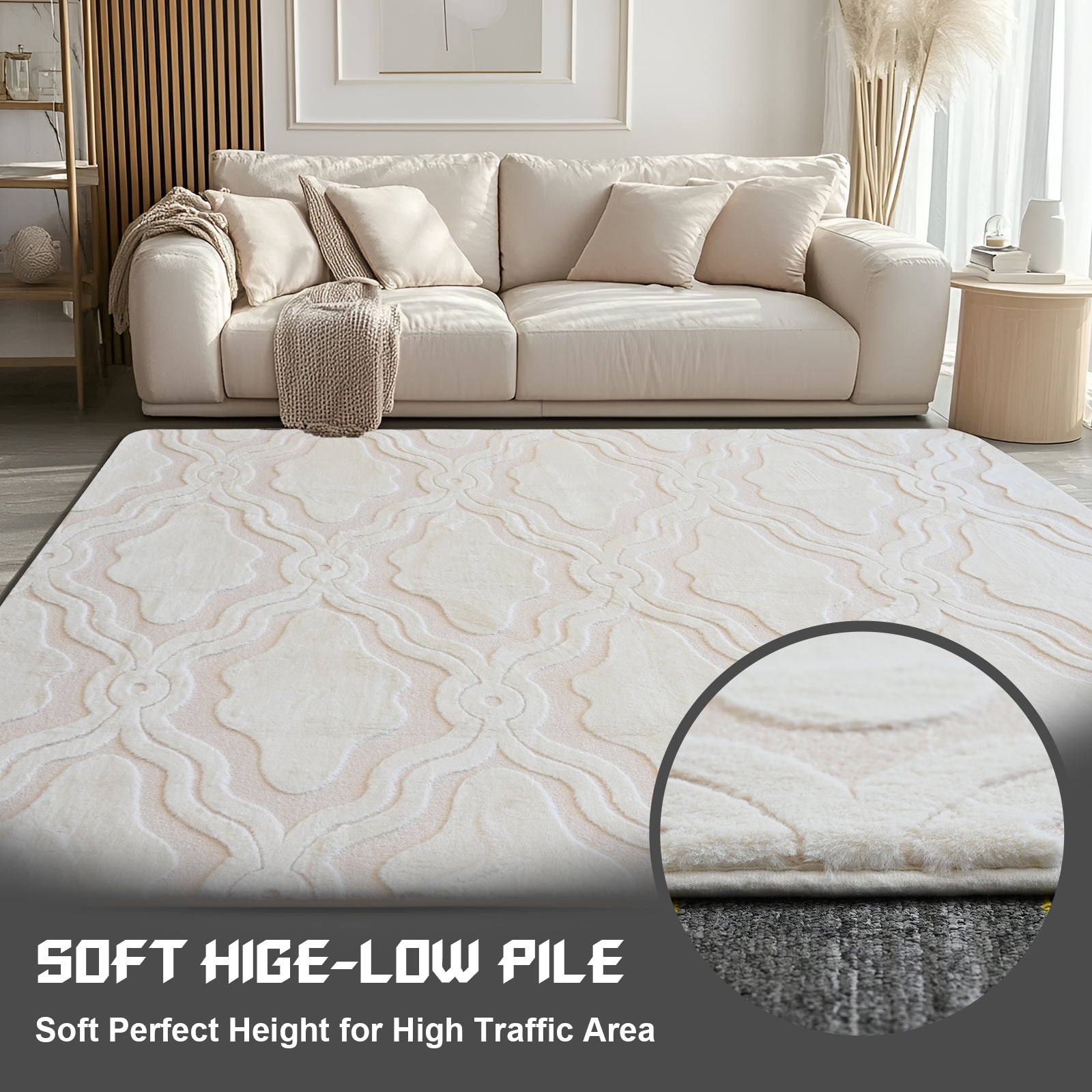 - [Ultra-Soft Area Rug] This plush area rug features a fluffy surface and a thick memory foam middle layer for cloud-like comfort underfoot. The 1.7-inch high-density pile delivers a luxuriously soft touch while insulating against cold floors—perfect for barefoot relaxation. An ideal choice for kids and pets, it adds a cozy vibe to bedrooms, living rooms, or nurseries.