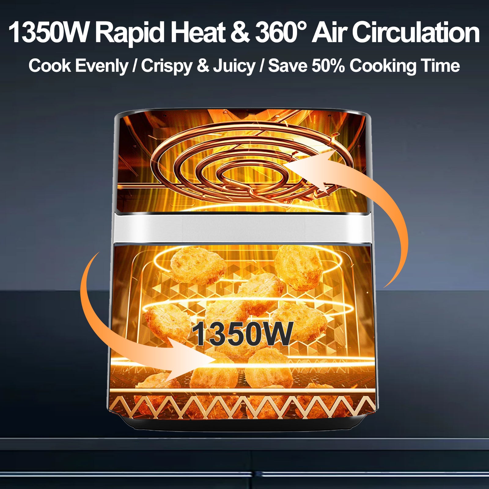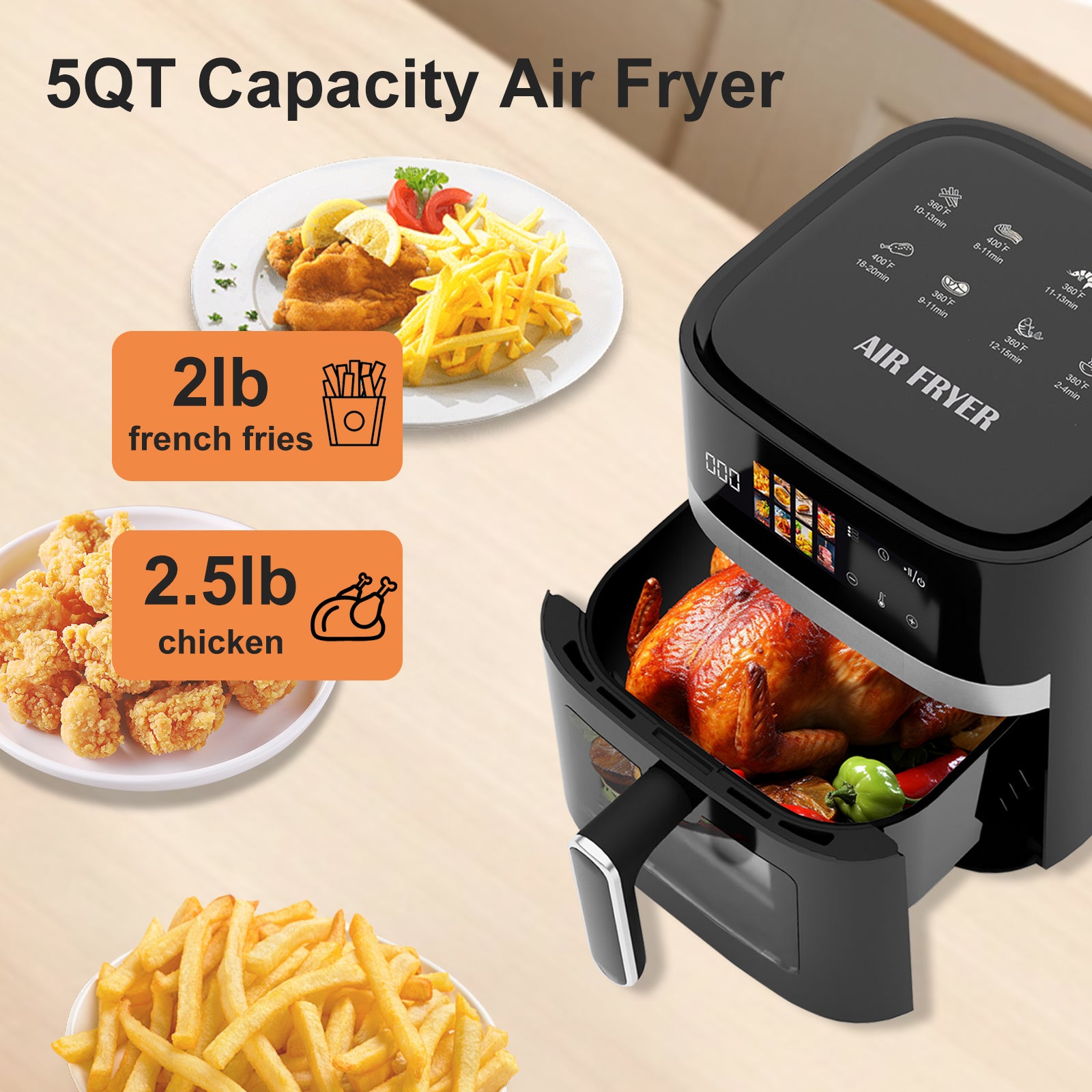 6QT Air Fryer, 8-in-1 Hot Oven with Digital LED Touchscreen, Visible Window, 1500W, Black
