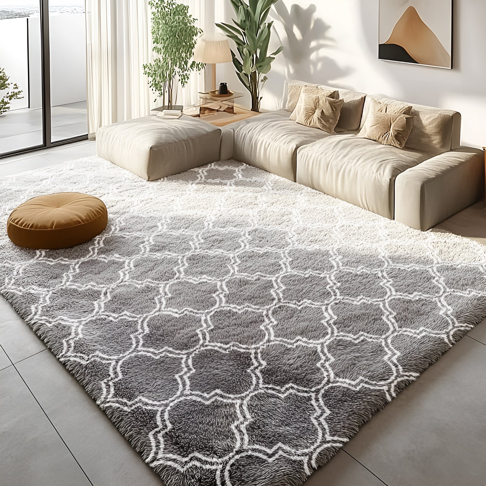 - [Ultra-Soft Area Rug] This plush area rug features a fluffy surface and a thick memory foam middle layer for cloud-like comfort underfoot. The 1.7-inch high-density pile delivers a luxuriously soft touch while insulating against cold floors—perfect for barefoot relaxation. An ideal choice for kids and pets, it adds a cozy vibe to bedrooms, living rooms, or nurseries.