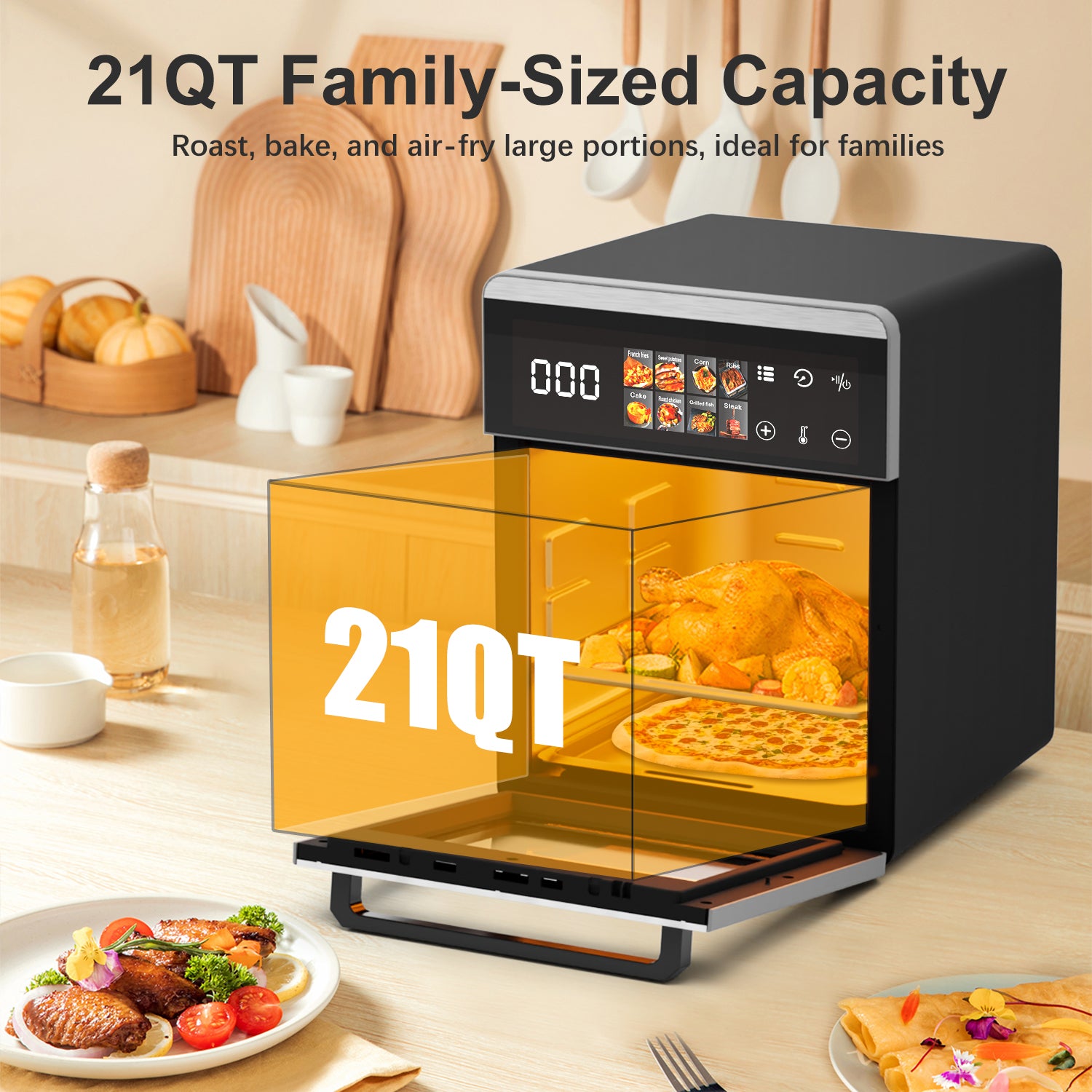 Bluebow 21QT Air Fryer Oven, 8-In-1 Multifunctional, Digital Touchscreen, Extra Large Countertop Oven for Family