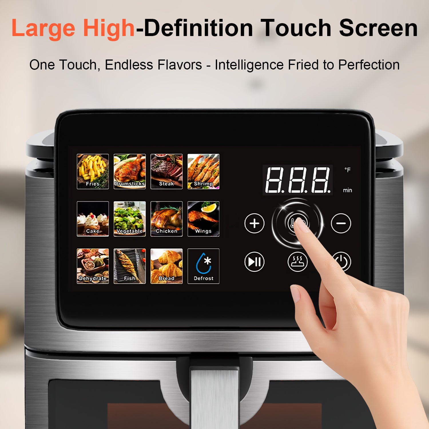 Bluebow 9QT Air Fryer with Large Touch Screen, 12-In-1 Multi-Functional, Visible Window, Oil-Free Cooking, Black