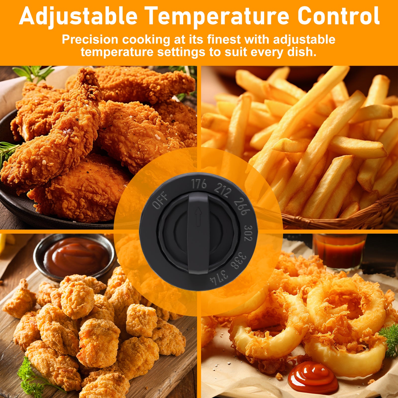 Temperature Control: The electric deep fryer is equipped with an adjustable temperature control knob, allowing you to dial in the exact heat setting needed for each dish. From delicate fish fillets to hearty French fries, achieve consistent results every time.