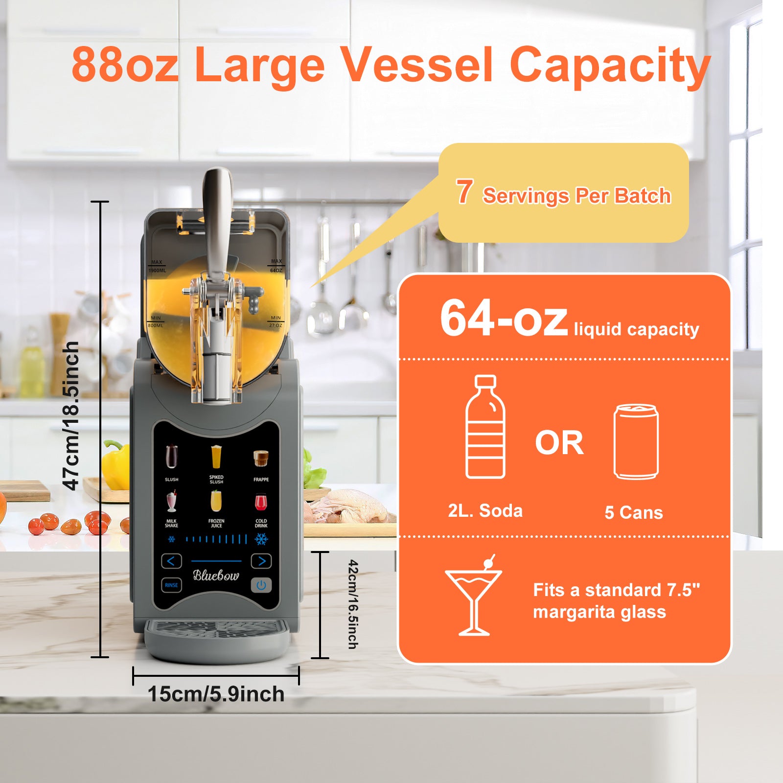 Bluebow Slushie Machine for Home, 88oz Vessel Slushy Maker with 6 Preset Programs, No Ice Needed, Frozen Drink Maker for Slush, Smoothie, Frappe, Milkshakes and More
