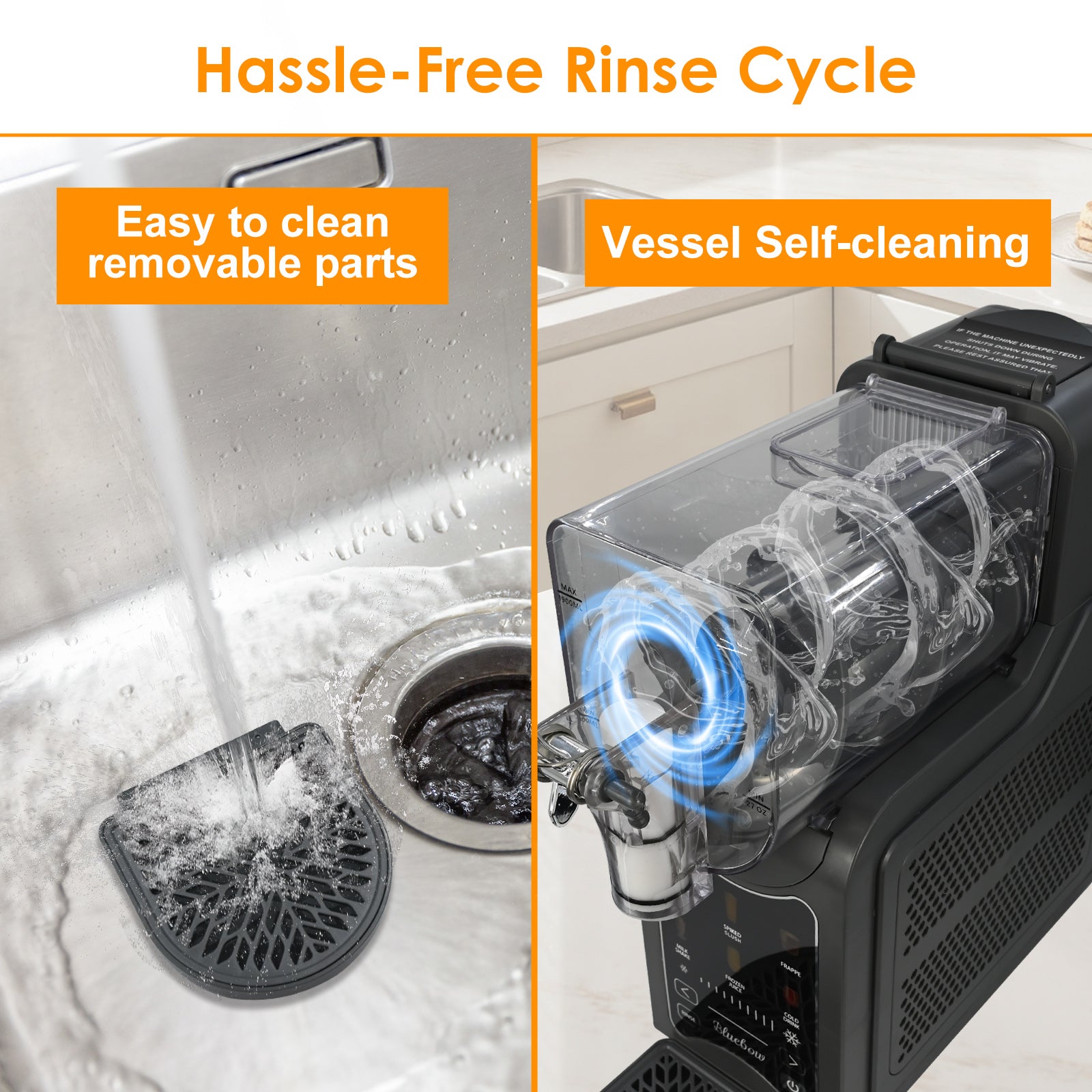 - Stress-Free Cleaning: The automated container cleaning function saves you time - just add water and press the clean button. No more struggling with hard-to-clean appliances! The compact and modern design fits neatly on your countertop when not in use.