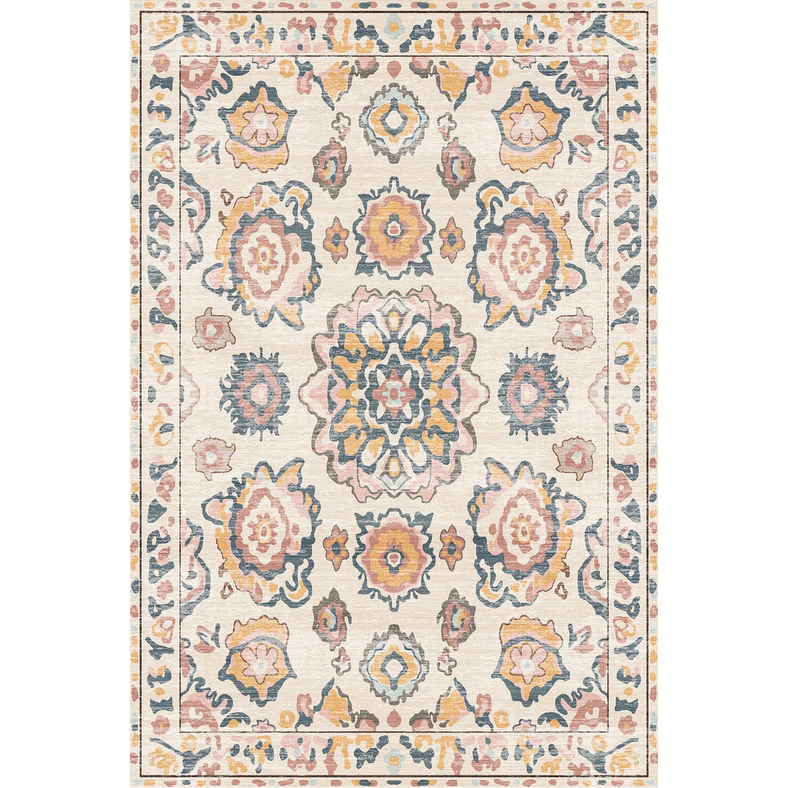 Boho 5'x7' Area Rugs for Living Room, Soft Machine Washable Rug, Neutral Moroccan Design for Bedroom, Dining Room, Playroom