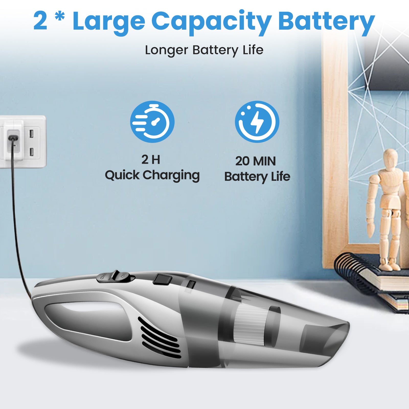 - Long Battery Life and Extended Runtime - Utilizing convenient USB charging technology, it can be fully charged in 2 hours and provide a runtime of 20 minutes. The rechargeable cordless design enables efficient cleaning on the go. A full charge meets daily cleaning needs, and the tools we provide allow it to handle cleaning tasks in any small area. It is recommended to fully charge it before first use. (Note: After continuous use for 15 minutes, pause for 1-2 minutes before resuming to prevent potential damage.)