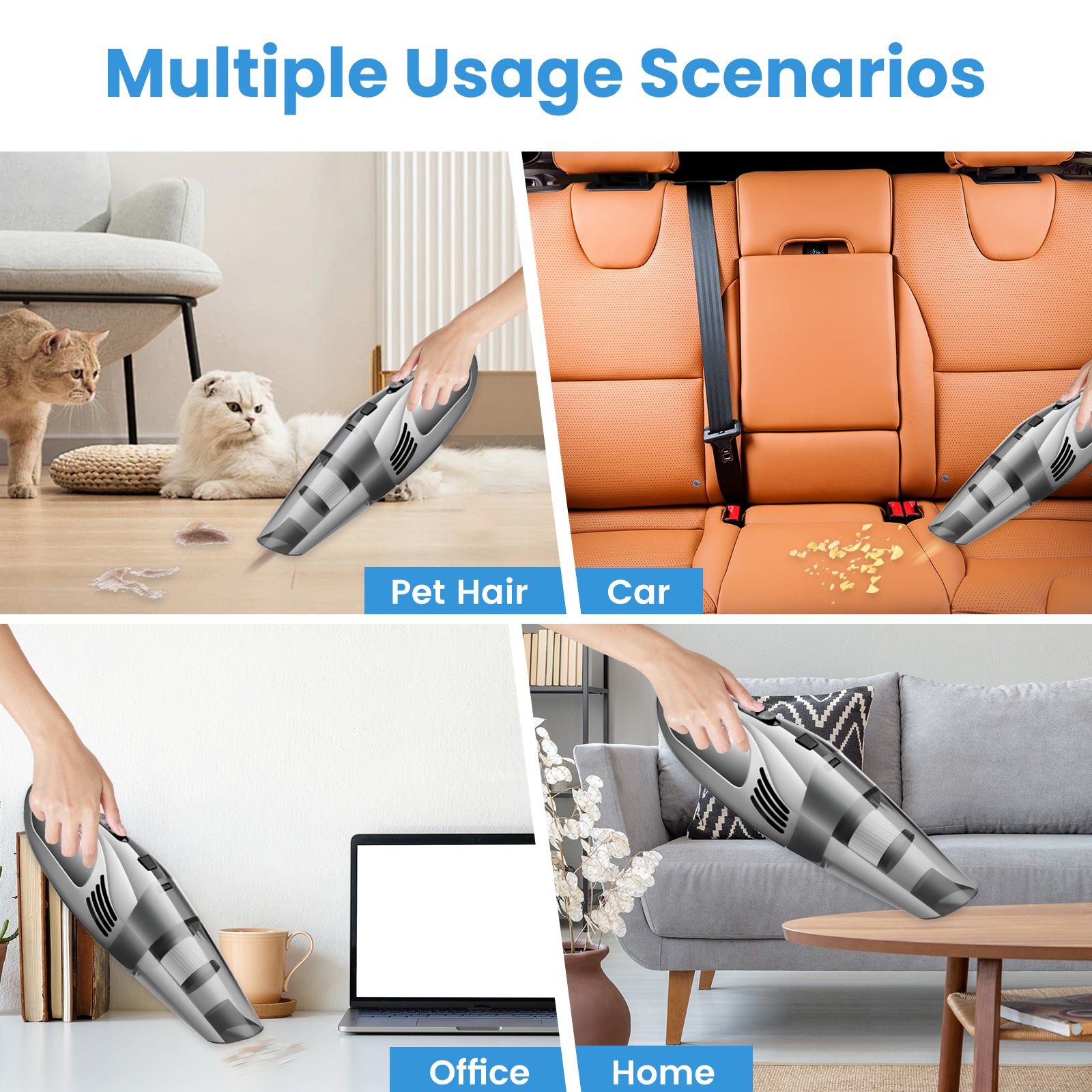 Cordless Handheld Car Vacuum, Portable Vacuum Cleaner, 8KPA Powerful Suction for Car and Pet Hair, Gray