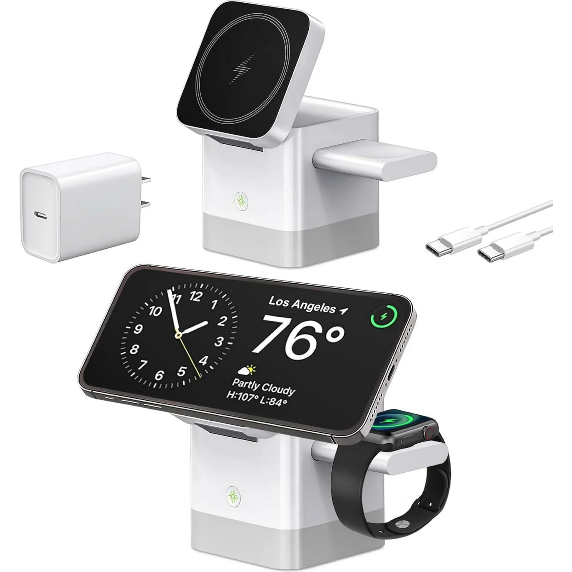 - 【All-in-One Wireless Charging Solution for Apple】The MagSafe-compatible charger allows you to charge your iPhone, AirPods, and Apple Watch simultaneously. It eliminates tangled wires and cluttered cables, keeping your space neat and organized, making it a convenient charging solution for your fast-paced lifestyle.