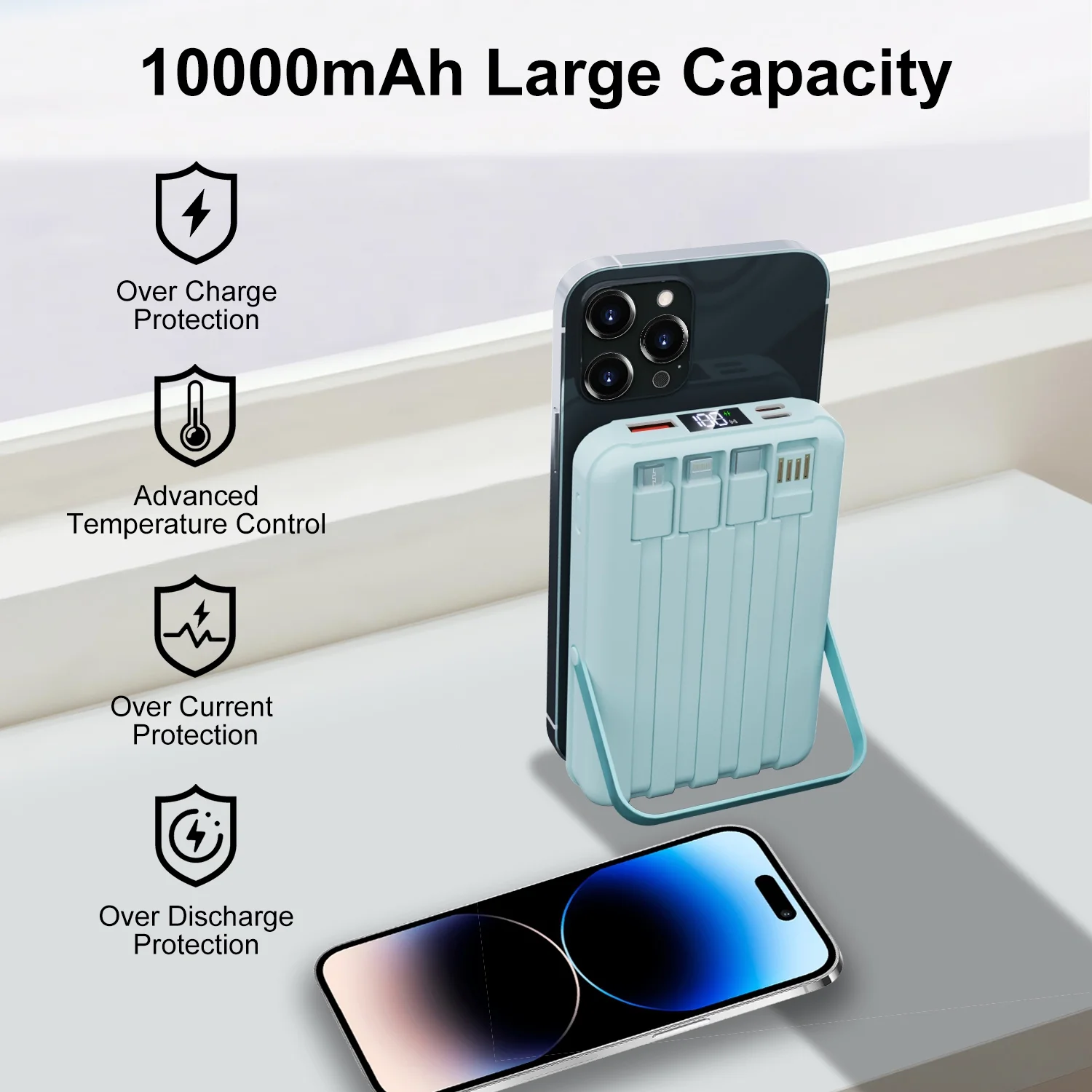 Magnetic Power Bank, 10000mAh Wireless Portable Charger with LED Display, Built-in Cables, Magsafe Charger with Foldable Stand, 22.5W PD Fast Charging for iPhone/Android, Blue