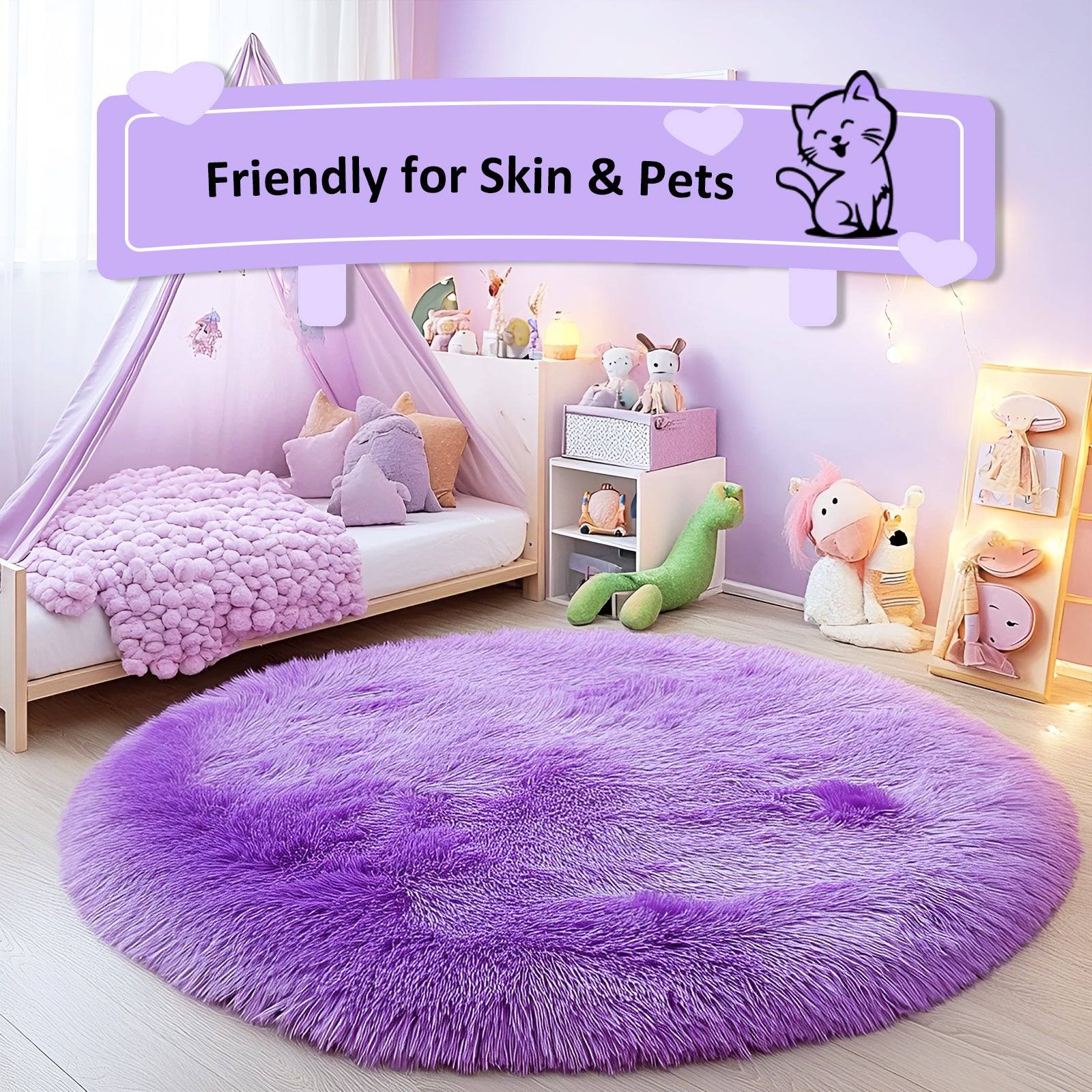 Pentantan 4ft x 4ft Round Shag Area Rugs for Bedroom, Fluffy Decorative Carpet for Living Room, Purple