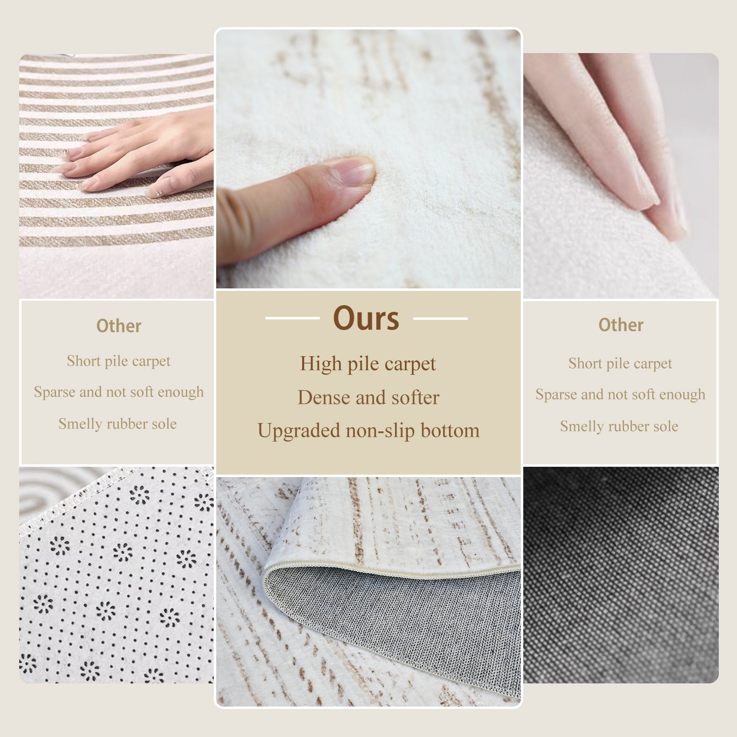- [Soft & Kid/Pet-Friendly] This carpet features a 0.27-inch pile height, made from high-quality faux wool fibers, offering a soft, skin-friendly feel that’s as cozy as a cotton ball. Its low-profile design prevents pet hair and dander from getting trapped, making it easy to clean. It’s durable enough to withstand chewing or scratching, and the low pile villus ensure that pet claws won’t snag, protecting both the carpet and floors.