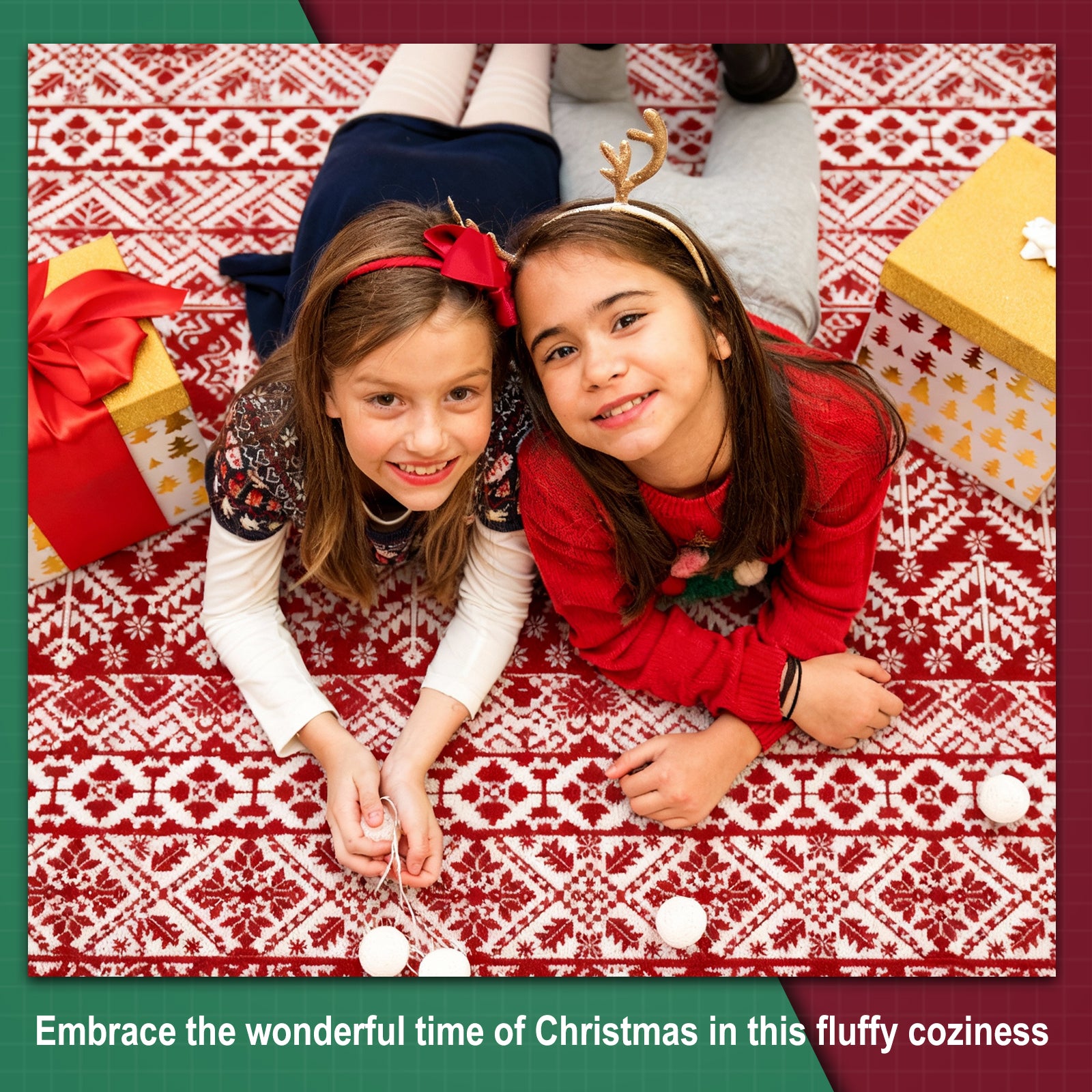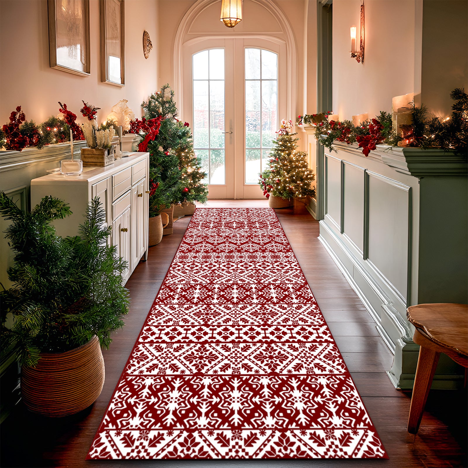 Pentantan Christmas Area Rugs, Washable Indoor Kitchen Rug for Entry Hallway Bathroom Bedroom, Vintage Soft Area Rug, Non Slip Back, Red