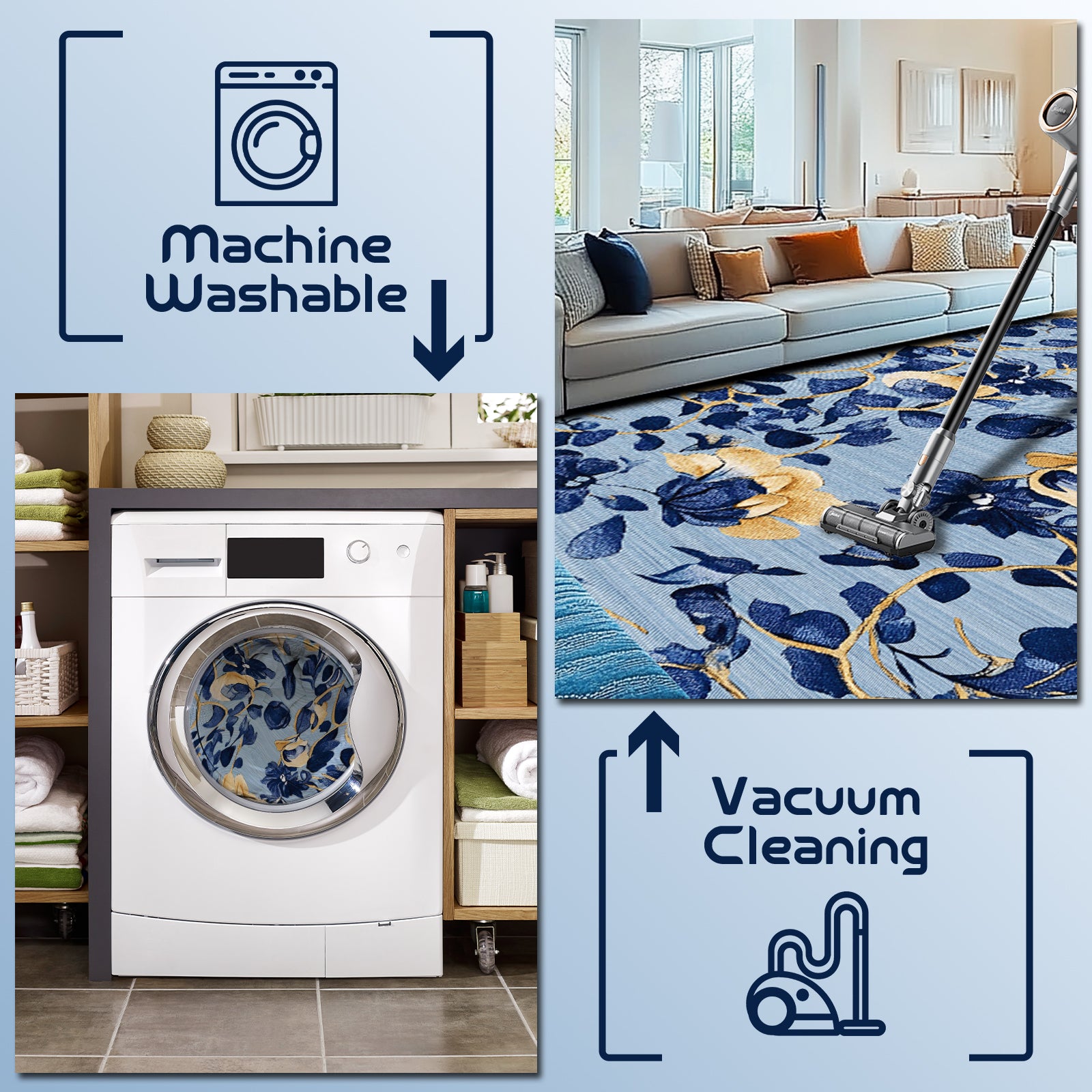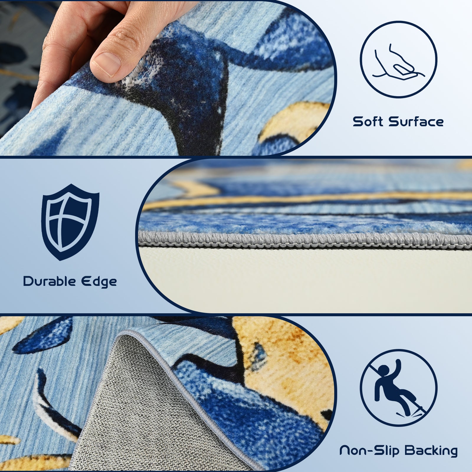 Pentantan Floral Area Rugs, Machine Washable Rug for Living Room- Soft Indoor Carpet, Low Pile for Bedroom, Dining Room, Playroom, Office