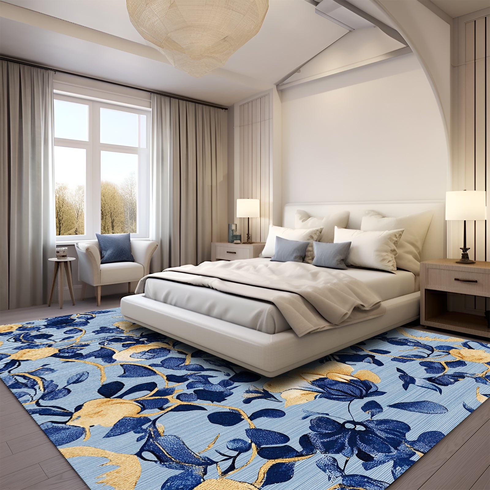 - [Elegant Patterned Design] This floral carpet, with its bright tones and intricate patterns, perfectly embodies the vintage aesthetics of floral style, skillfully merging classic charm with modern design. The contrast between blue and colorful flowers creates a fresh and warm visual atmosphere, akin to an artistic masterpiece. Made from soft polyester fibers, it is durable and easy to care for, making it perfect for high-traffic areas like dining rooms and living rooms. Whether your decor is modern minimalist or classic vintage, this carpet can bring a touch of elegance and energy to your space.