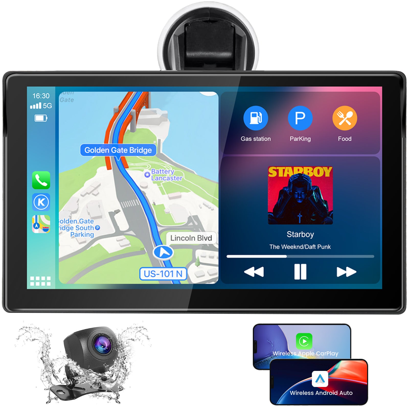 - 【Easy Installation & Wider Compatibility】: This wireless portable car stereo is easy to install and does not require any special installation tools or skills. Simply plug it in and use it, and its suction bracket can be easily attached to your car. You can adjust the screen angle to suit your driving habits. It is compatible with a wide range of vehicle models, such as cars, trucks, caravans, vans, trailers, campervans, and more.