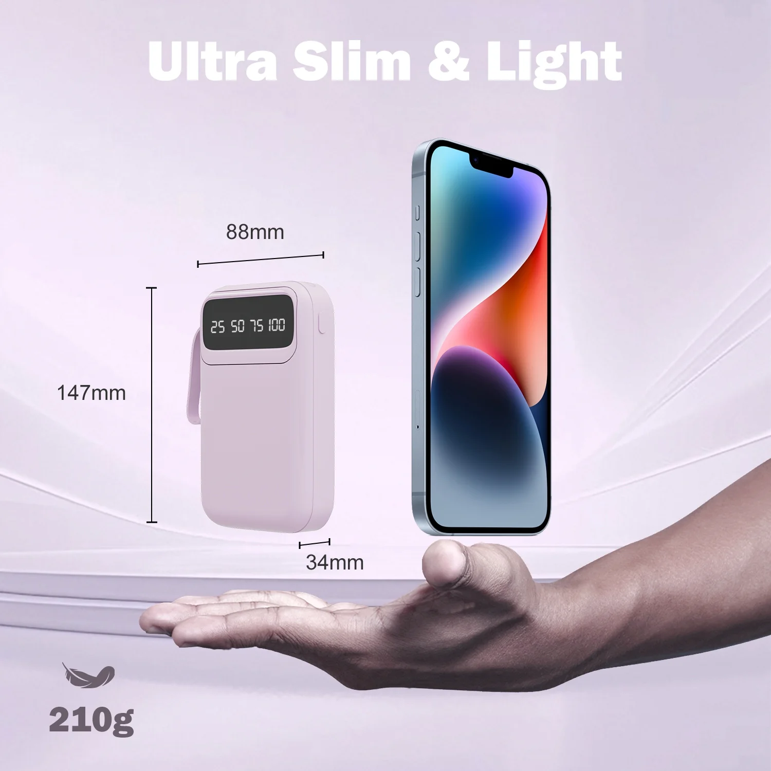 SANPTENT 10000mAh Power Bank Portable Charger with Cables, USB Battery Pack Compatible for iPhone & Android Cell Phones, Purple