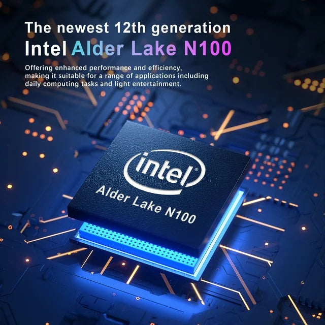 - Equipped with the Intel Alder Lake-N100 12th Generation processor clocked at 3.4GHz, the laptop efficiently manages everyday tasks. Boasting 4 cores and 4 threads, it offers a performance improvement of up to 45% for daily activities compared to its predecessors. Experience a smooth and responsive workflow, whether you're tackling demanding workloads or indulging in multimedia entertainment.