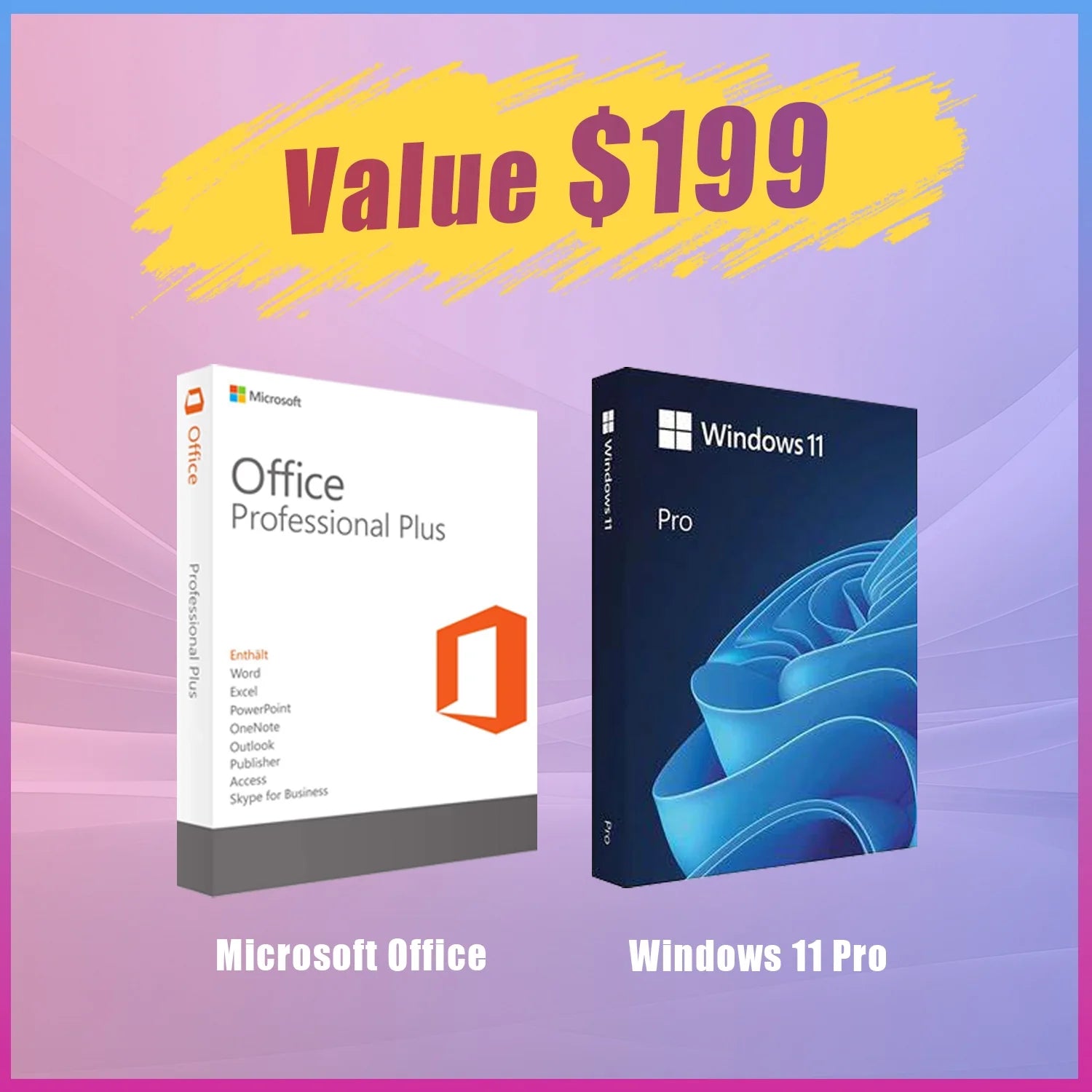 - Windows 11 Pro and Microsoft Office: Benefit from the latest operating system with Windows 11 Pro, offering enhanced security and productivity features. Microsoft Office (Word, Excel, PPT, etc.) pre-installed—your productivity suite ready to roll without initial setup.