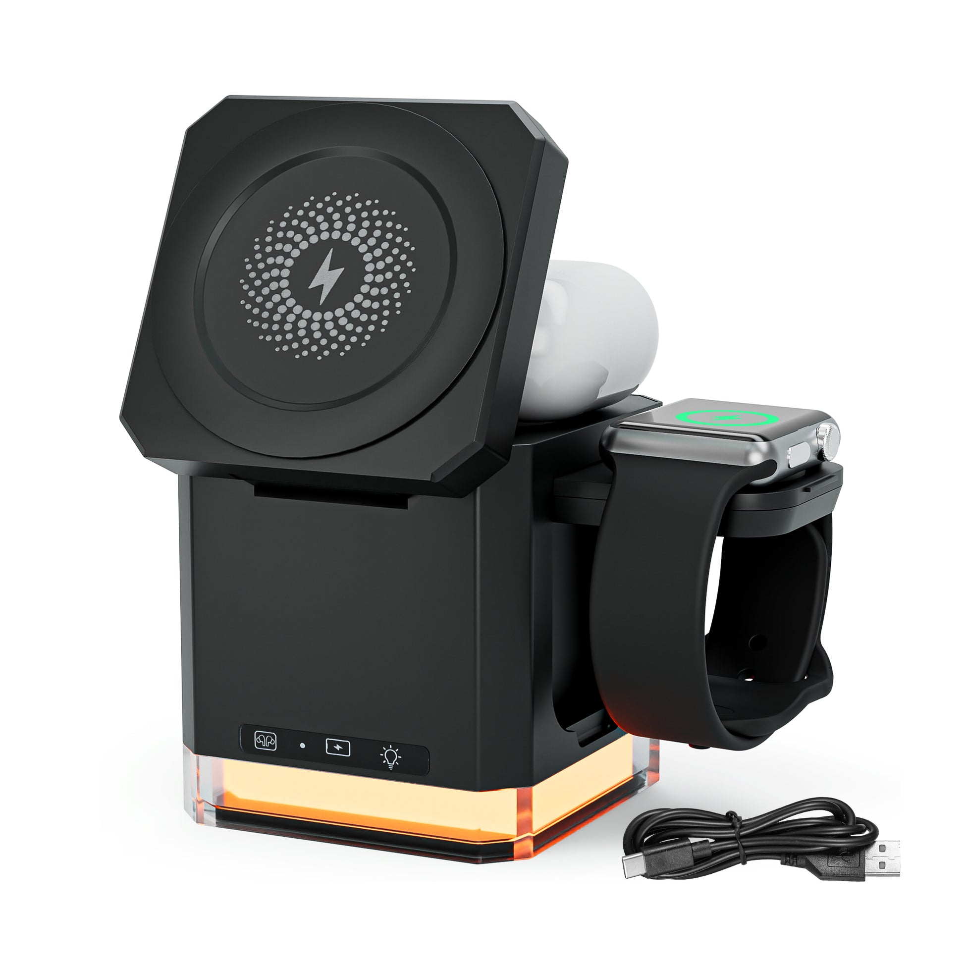 - 【All-in-One Wireless Charging Solution for Apple】The MagSafe-compatible charger allows you to charge your iPhone, AirPods, and Apple Watch simultaneously. It eliminates tangled wires and cluttered cables, keeping your space neat and organized, making it a convenient charging solution for your fast-paced lifestyle.