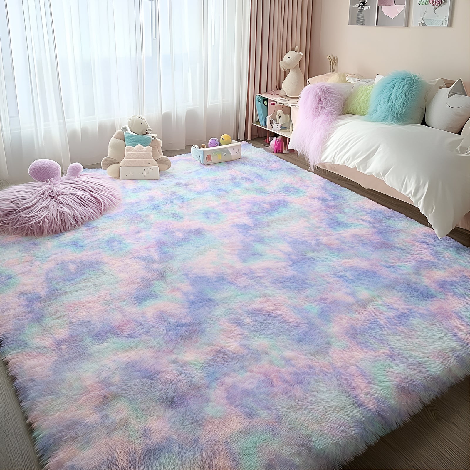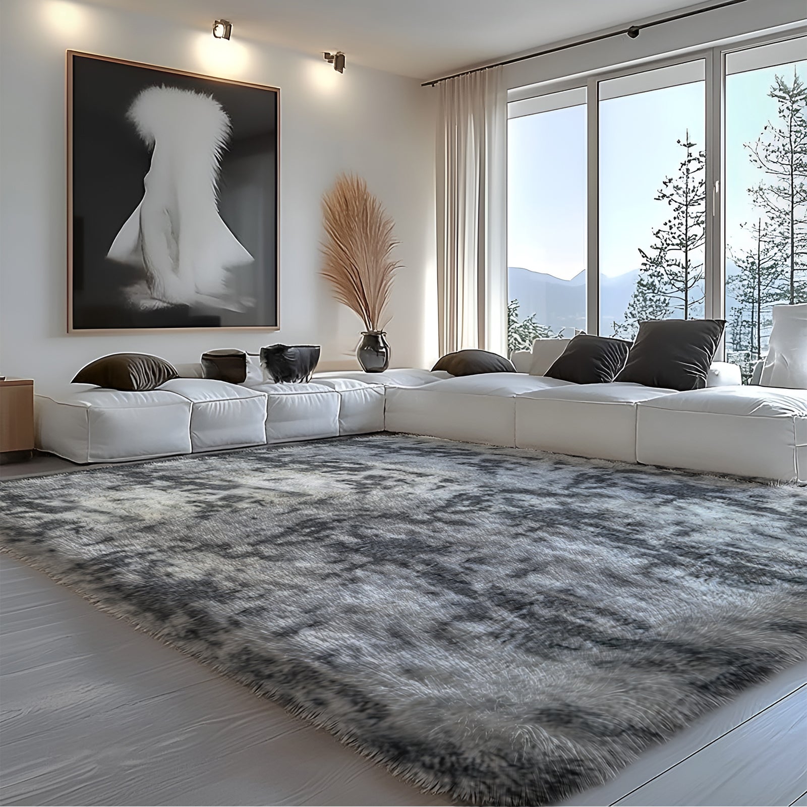 - [Ultra-Soft Area Rug] This plush area rug features a fluffy surface and a thick memory foam middle layer for cloud-like comfort underfoot. The 1.7-inch high-density pile delivers a luxuriously soft touch while insulating against cold floors—perfect for barefoot relaxation. An ideal choice for kids and pets, it adds a cozy vibe to bedrooms, living rooms, or nurseries.