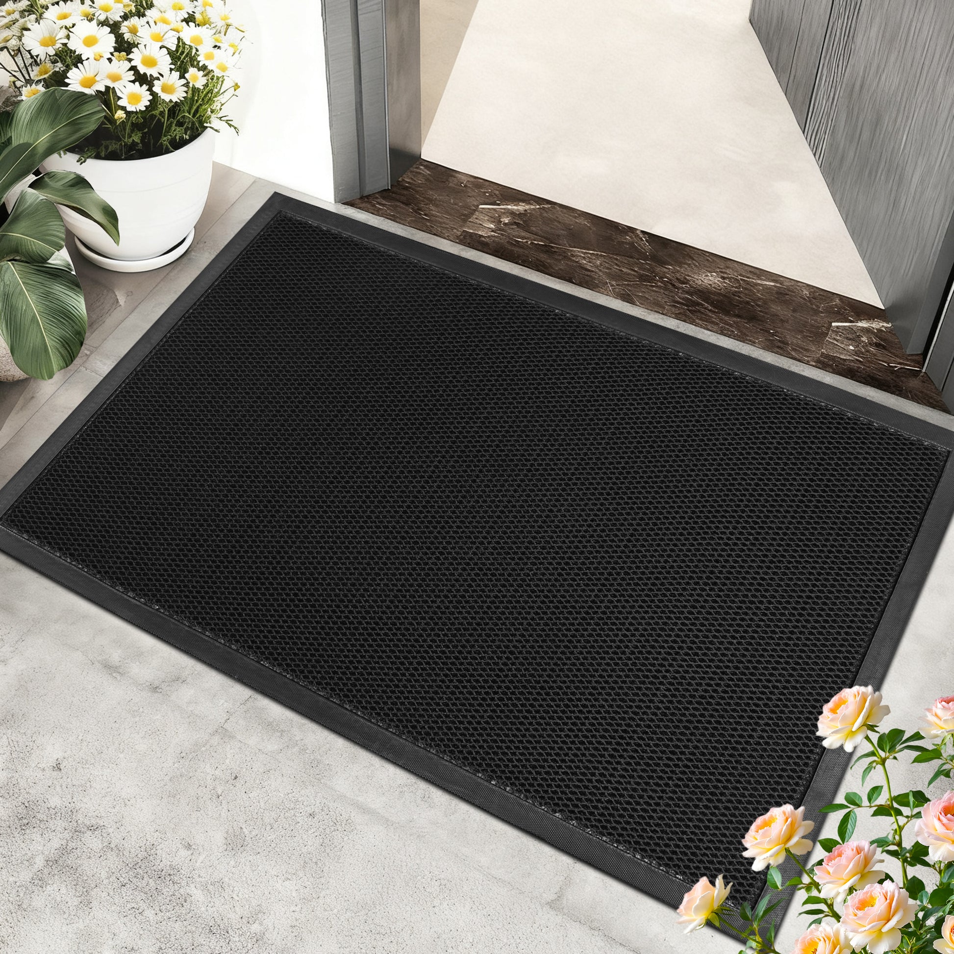 - 【All-Weather & Versatile】Built to withstand sun, rain, and snow, this doormat remains durable and reliable through every season. Perfect for front doors, patios, garages, and other high-traffic entryways, it helps keep your floors clean year-round.