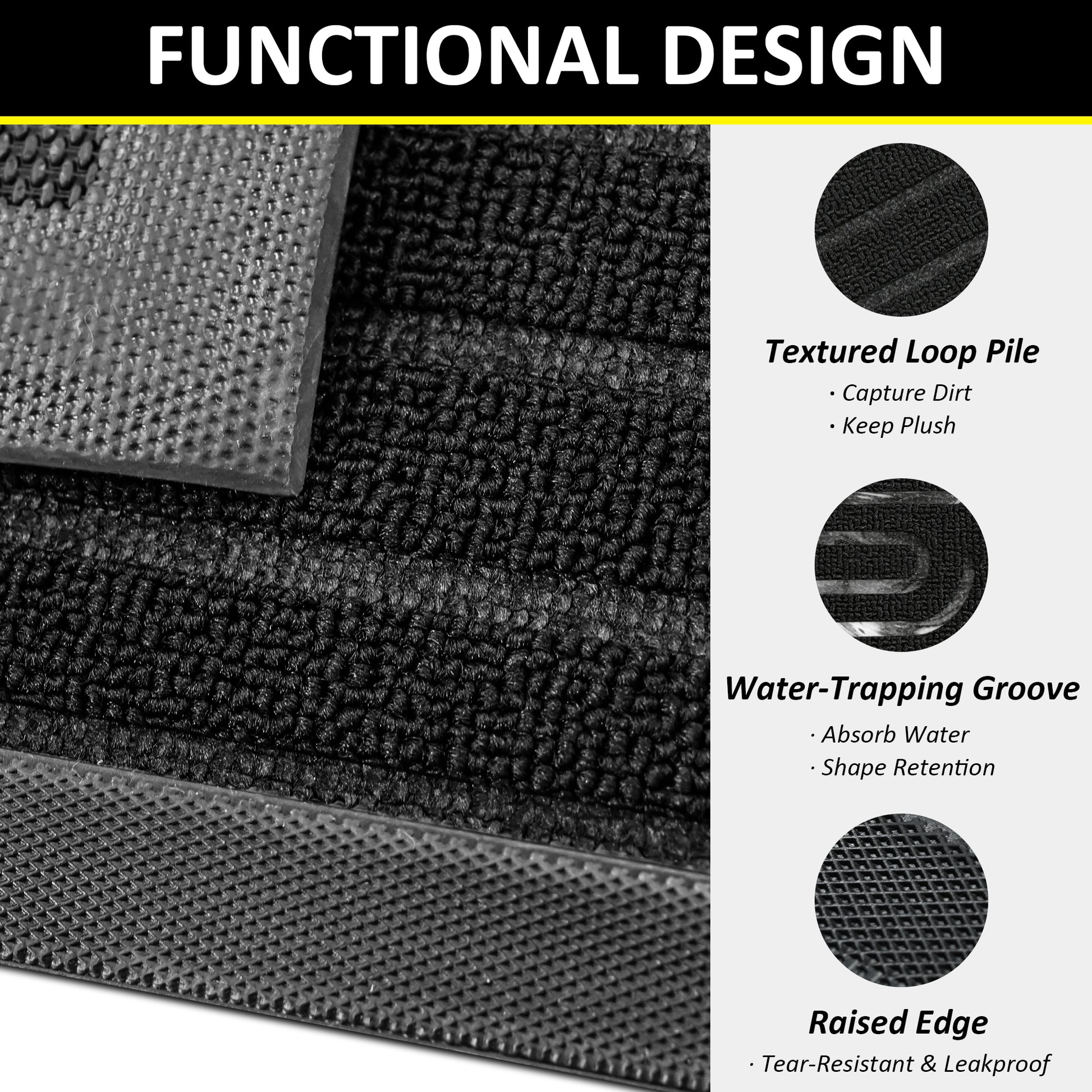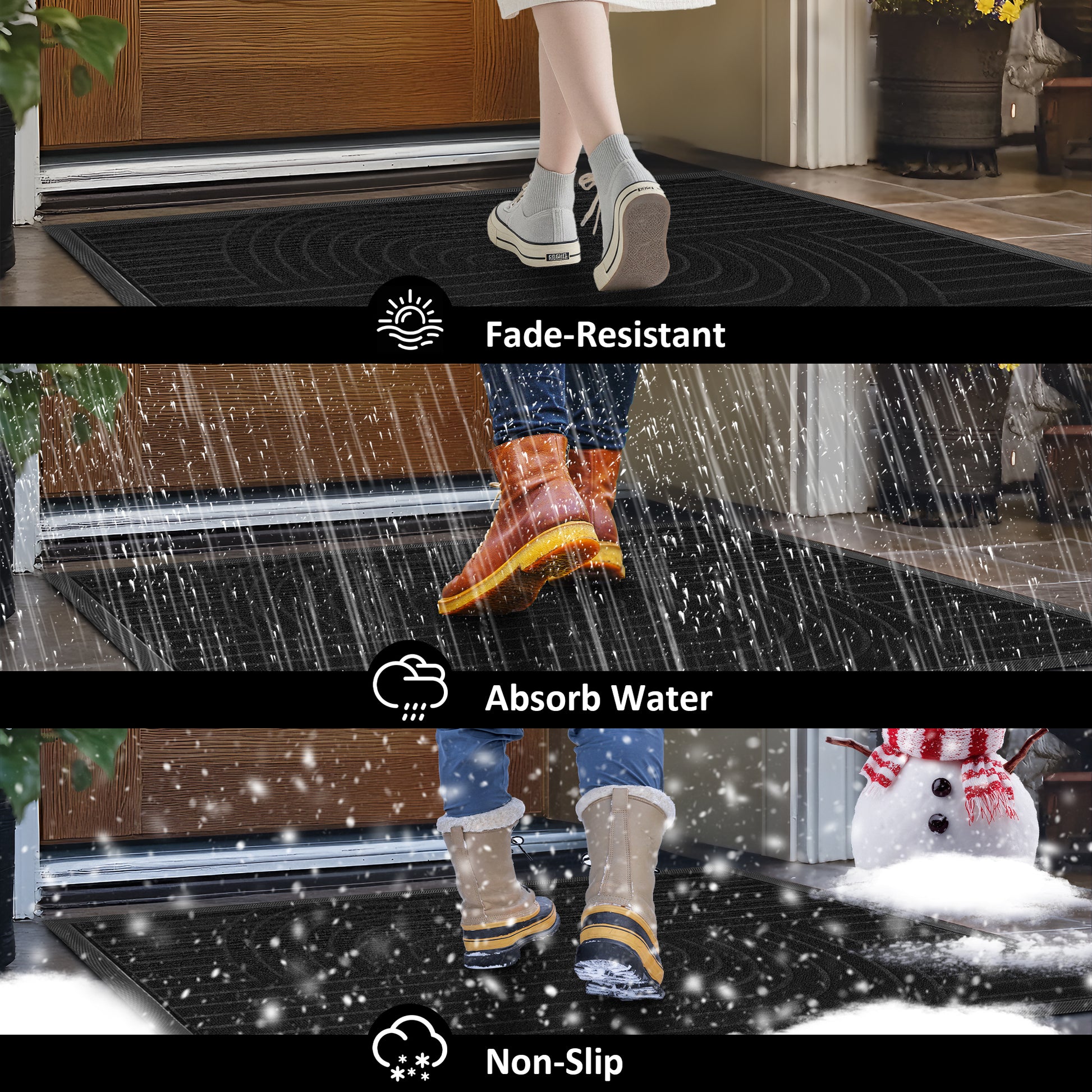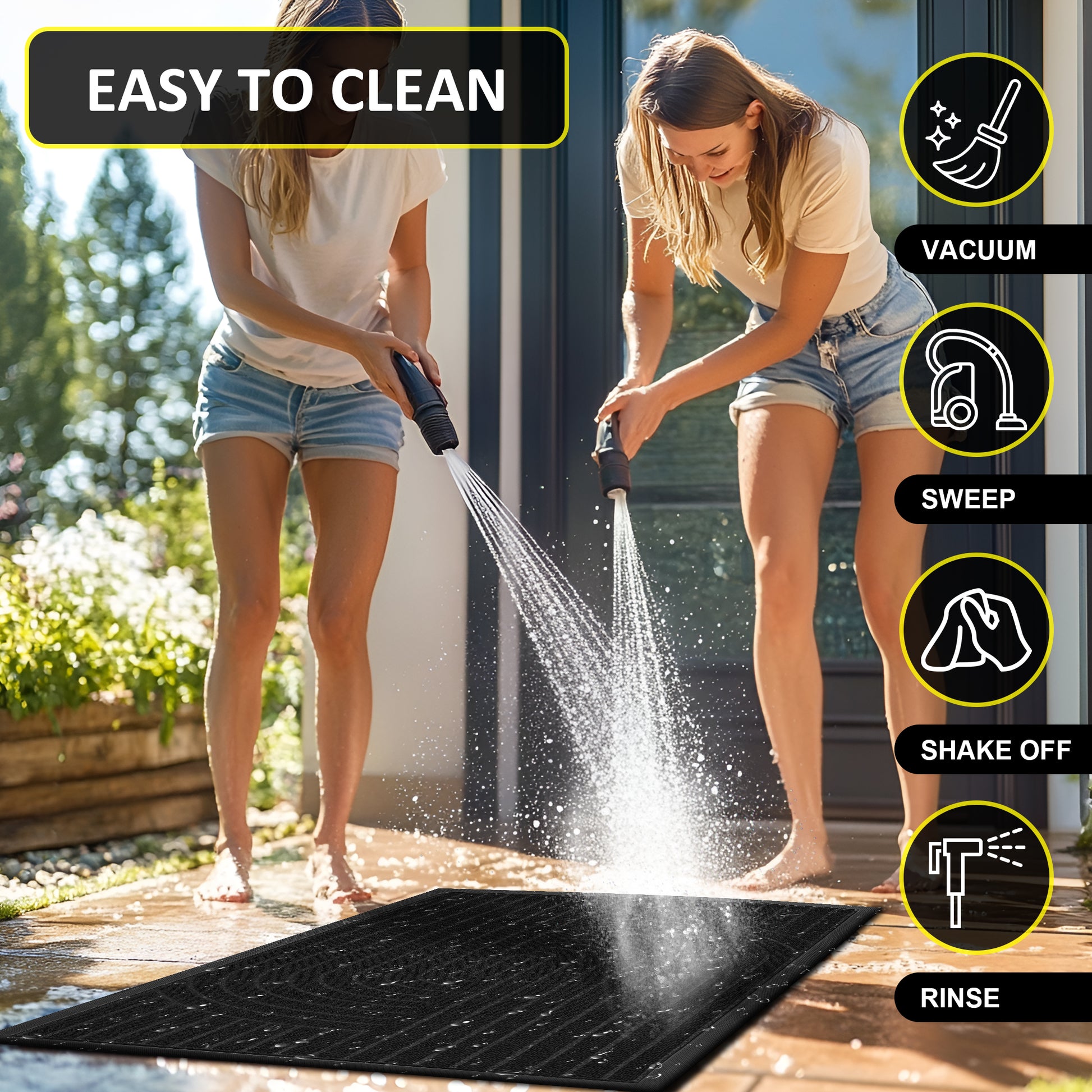 - 【All-Weather & Versatile】Built to withstand sun, rain, and snow, this doormat remains durable and reliable through every season. Perfect for front doors, patios, garages, and other high-traffic entryways, it helps keep your floors clean year-round.