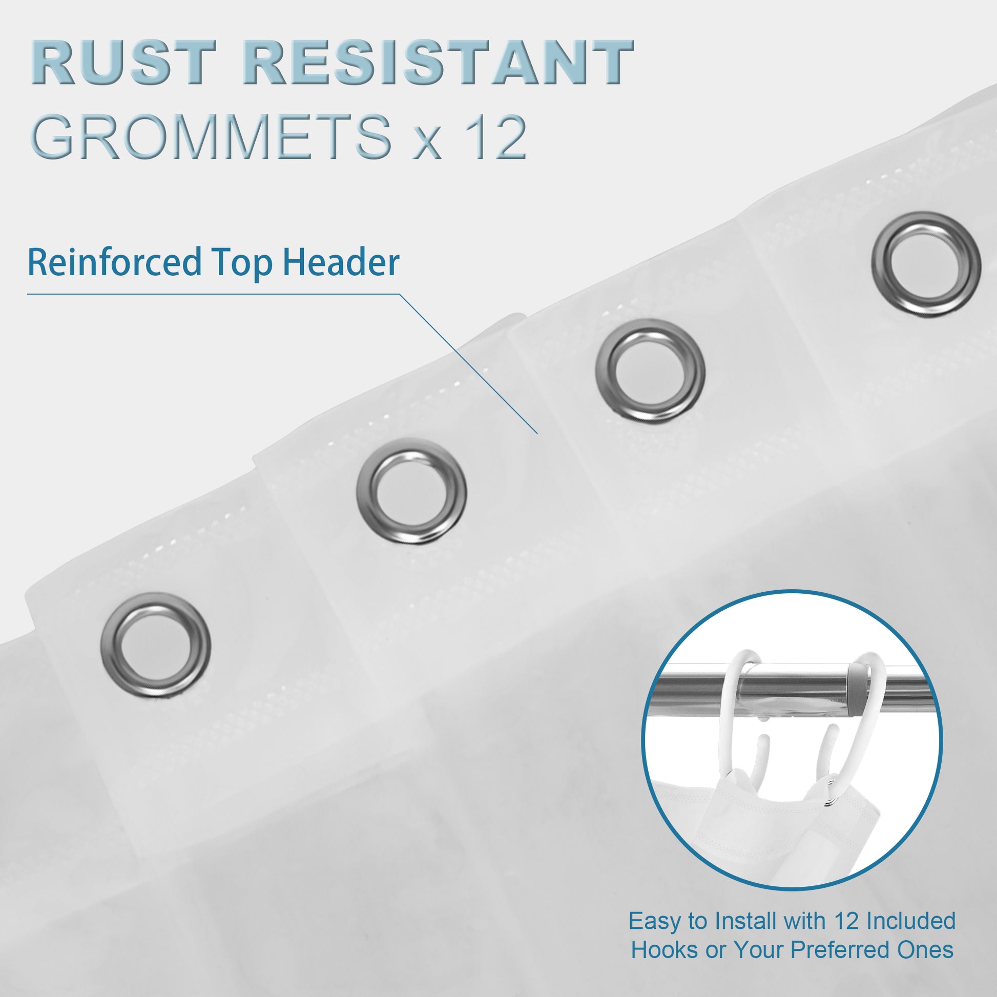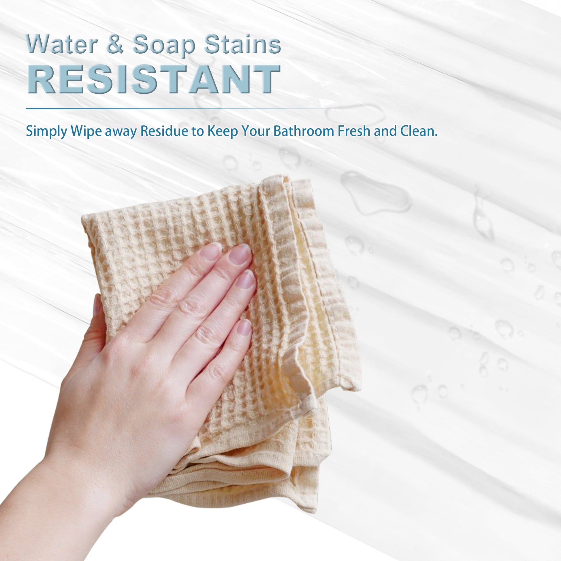 - 【Standard Size & Wide Use】: Measures 72"L x 72"W, fitting most tubs and showers and suitable for a wide range of settings, the package also includes 12 hooks for easy installation. It can be used alone for a clean look or paired with a decorative curtain for added style.