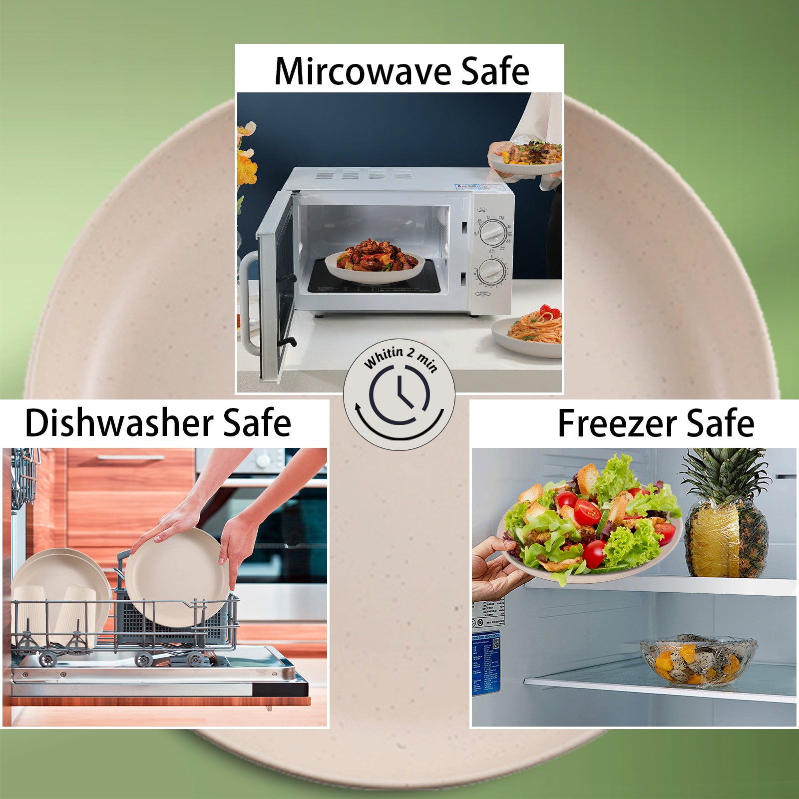The Wheat Straw Sets is safe for use in the microwave, freezer, and dishwasher, with heat resistance up to 212°F (100°C), ensuring quick reheating and effortless cleaning.