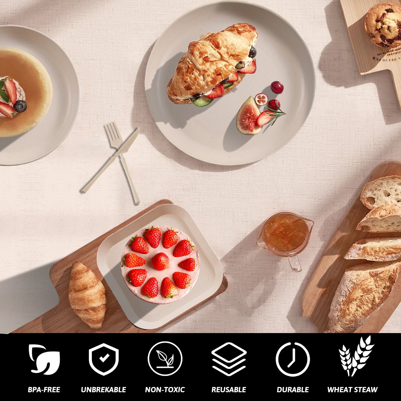 Wheat Straw Dinnerware Sets, 48 Pcs Unbreakable Dinnerware Sets for 4, Microwave Dishwasher Safe