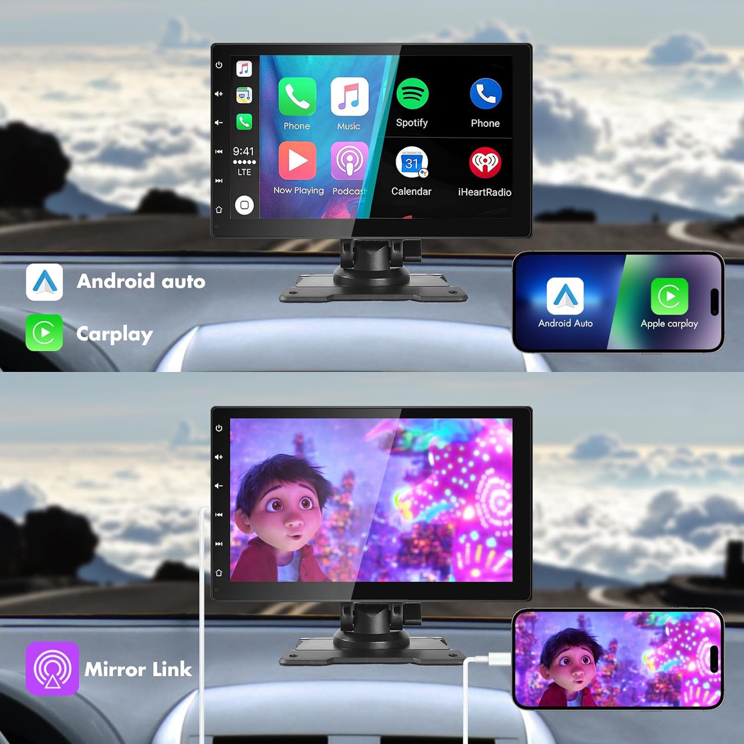 Wireless Apple CarPlay 9'' Touchscreen Dash Mount & Android Auto Portable Car Stereo